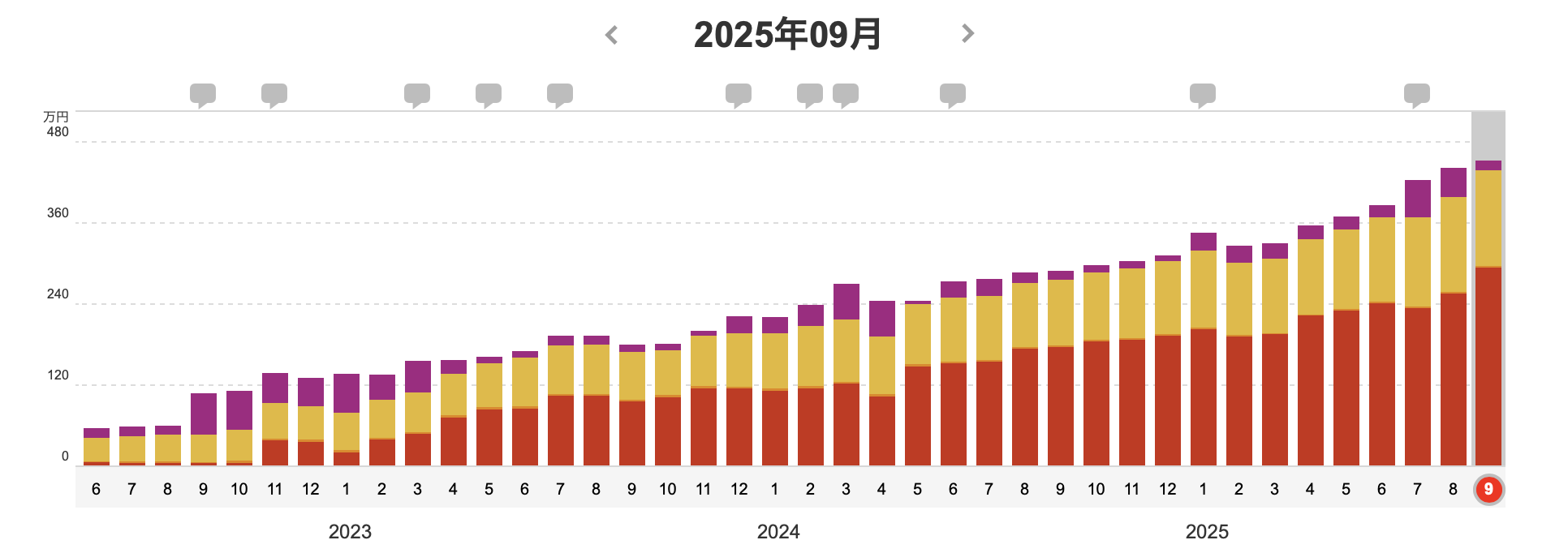 8月と同様に中旬までに約25万円ほど評価益を伸ばせたが、以降失速。過去最高評価益は継続だがもっと伸ばしていきたい
